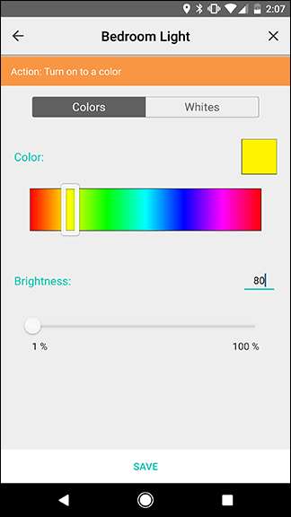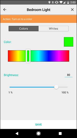 במסך הבא הגדר את צבע האור לירוק ואת הבהירות לכל מה שתרצה (במקרה זה עשיתי 80%). כשתסיים, הקש על שמור.