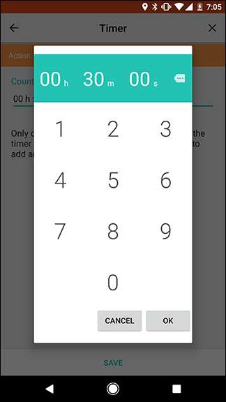 בדיוק כמו בעבר, בחר בפעולת "הפעל את הטיימר". הגדר טיימר זה למשך 30 דקות. זה יגיד לילד שלך שהם קצרים בזמן וצריך לסכם את זה בקרוב. אתה יכול גם להתאים זאת לפי הצורך. כשתסיים, הקש על שמור.