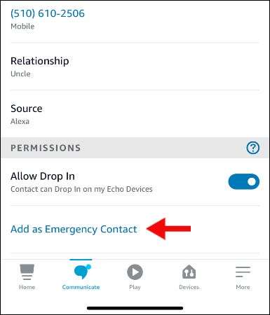 בכל מקרה, אלקסה תשלח את הקשר לטקסט כדי לאשר אותם כמגע חירום. זה מאפשר להם להתקשר ולהצהיר לך באמצעות Alexa על מכשיר מופעל או שאינו מופעל לא Alexa.