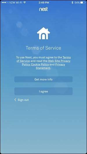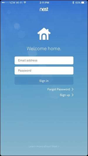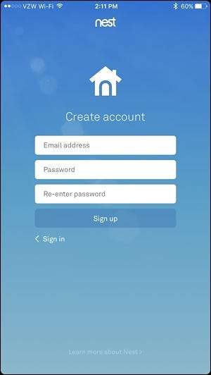 הזן את כתובת הדוא"ל שלך והעלה סיסמה לחשבון Nest שלך. לאחר מכן הקש על "הירשם".