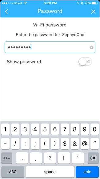 הזן את הסיסמה עבור רשת ה- Wi-Fi שלך והקש על "הצטרף" למטה בתחתית.