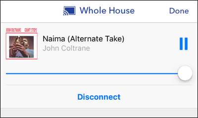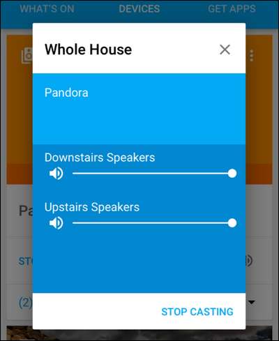 אם תפעיל אפליקציה עם יכולות ליהוק, כמו אפליקציית פנדורה הנ"ל, תראה את "כל הבית" (או כל מה שקראת לקבוצת הרמקולים שלך), כפי שנראה למטה.
