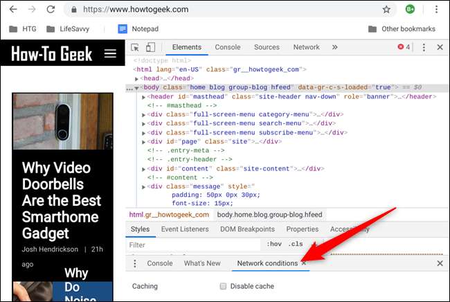 לחץ על "תנאי רשת", הנמצא בתחתית החלונית כלים למפתחים.