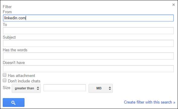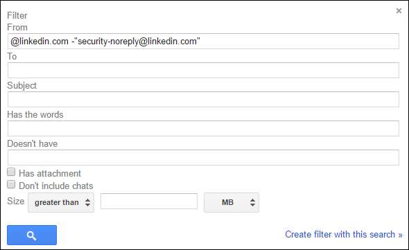 . לדוגמה, ב- Gmail, המסנן הזה ייראה כך: