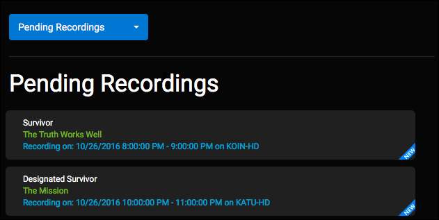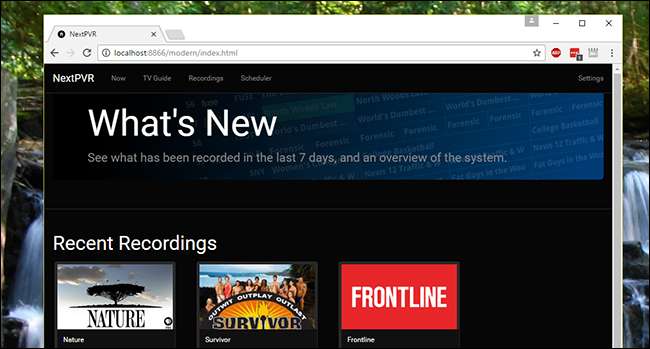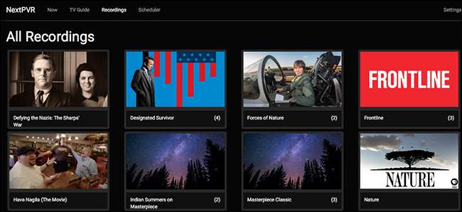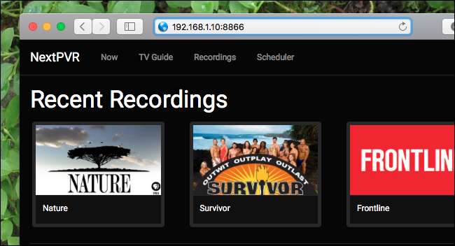 אם הכל ילך כשורה, כעת אתה אמור לראות את ממשק המשתמש באינטרנט. תראה תמונות ממוזערות של כל ההקלטות שלך, או שתעבור לכרטיסייה Now כדי לצפות בטלוויזיה.