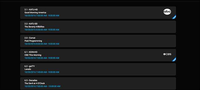 לחלופין, לחץ על הכרטיסייה "מדריך טלוויזיה" כדי לראות את רשימות הטלוויזיה שלך: