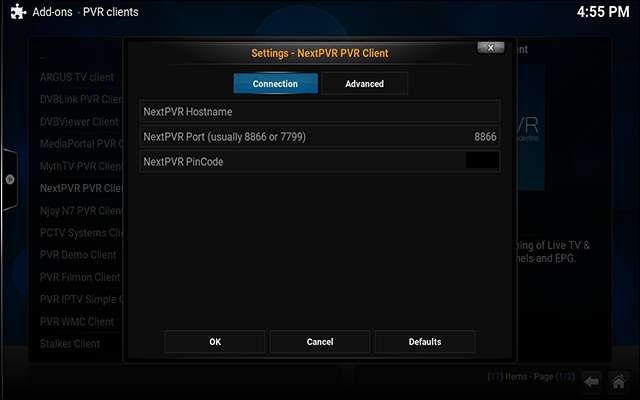 הגדרת זה כמעט זהה להגדרת Kodi לגישה ל- NextPVR במחשב מקומי, עם שינוי הגדרות אחד קטן.