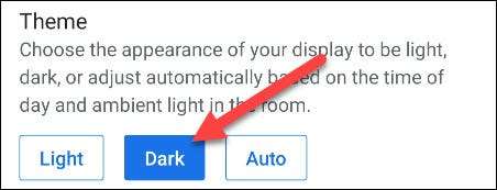 גלול למטה ובחר "Dark" עבור הנושא.