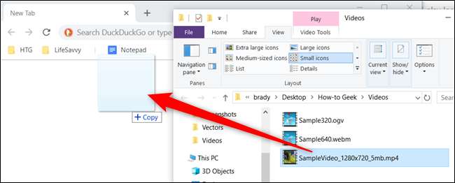 לחלופין, אתה יכול לגרור את קובץ הווידיאו ישירות לכרטיסיה חדשה וכרום יפתח את הווידאו באופן אוטומטי.