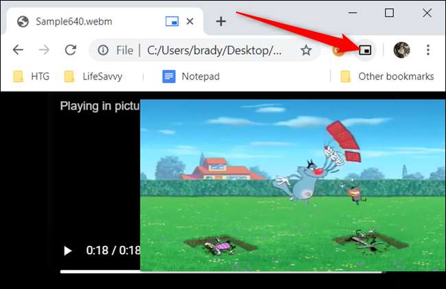 אם אינך משתמש בתוסף Chrome ובמקום זאת אתה רוצה להשתמש בתוסף מובנה תכונת PiP לחץ באמצעות לחצן העכבר הימני על הסרטון ואז לחץ על "תמונה בתמונה".
