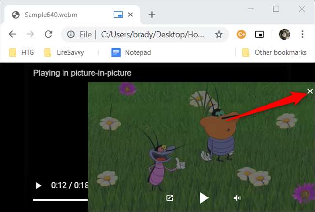 לאחר שתסיים את הסרטון, לחץ על ה- "X" בחלון הנגן המיני כדי לסגור אותו או בחר בסמל התיבה והחץ בפינה השמאלית התחתונה של הנגן כדי לחזור ללשונית בה הושמע הסרטון.