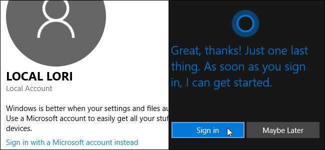 Cortana משתמשת ושומרת מידע אודותיך באמצעות חשבון Microsoft שלך. ובזכות העדכון האחרון של Windows 10 בנובמבר, יש דרך להיכנס לחשבון Microsoft שלך עבור Cortana בלבד, תוך שמירה על חשבון Windows 10 המקומי שלך. אינך צריך להמיר את חשבון Windows המקומי שלך לחשבון של מיקרוסופט.
