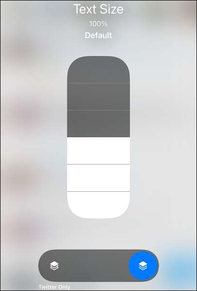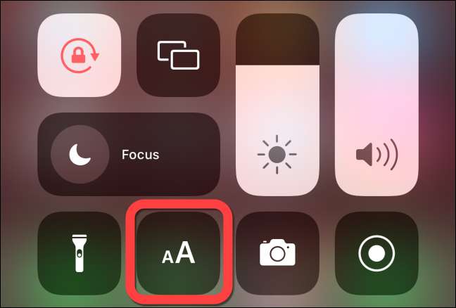 ראשית, לפתוח את היישום שעבורו ברצונך להתאים את גודל הטקסט. הבא, לפתוח את מרכז השליטה במסך והקשה של האייפון שלך, הקש פעמיים, או הקש הקשה ממושכת על כפתור "AA" כדי להעלות את המחוון התאמת גודל הטקסט.