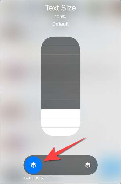 אחרי זה, כפתור "גודל טקסט" יופיע כאשר אתה פותח את מרכז הבקרה.