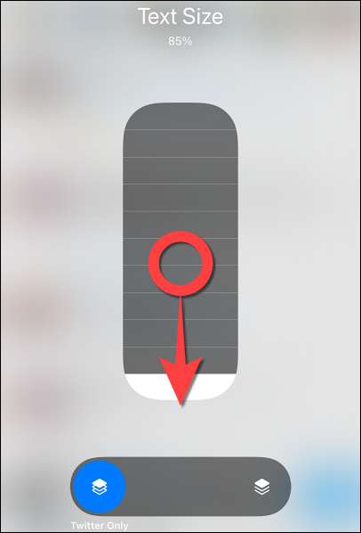באופן דומה, אתה יכול להחזיק ולהעביר מטה האצבע כדי להקטין את גודל הטקסט עבור היישום הספציפי.