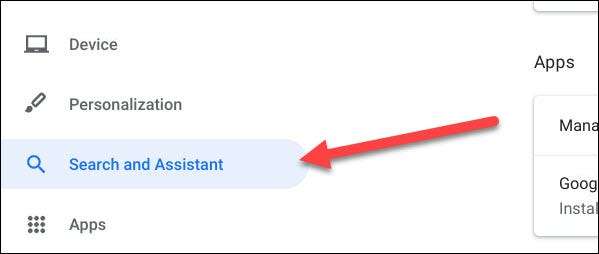 בשנת הגדרות, בחר "חיפוש עוזר" בתפריט הצדדי.