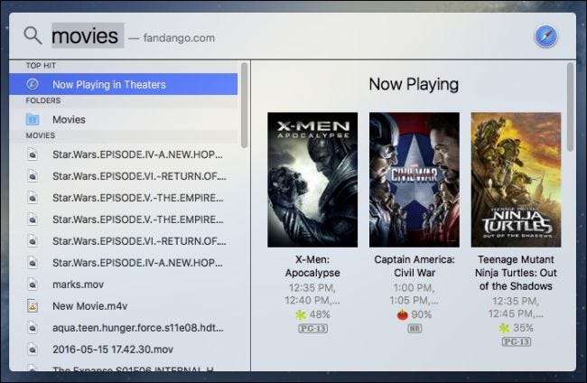 באופן דומה, אם אתה רק זקוק למידע פשוט על הסרט עבור מה שמשחק בקרבתך, כל שעליך לעשות הוא להקליד "סרטים" והכל יתגלה.