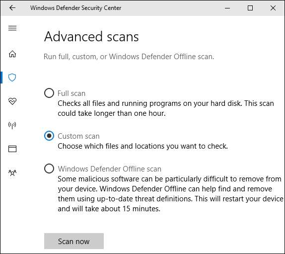 תוכל גם ללחוץ על הקישור "סריקה מתקדמת" באותו מסך כדי להפעיל שלושה סוגים שונים של סריקות: