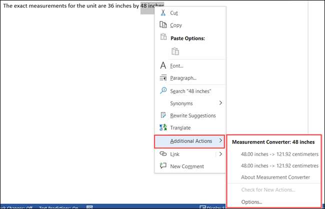 בחר את הכרטיסייה "פעולות". מכאן, סמן את התיבות עבור "אפשר פעולות נוספות ב לתפריט הקליק הימני," ואז "מדידה ממיר" ברשימה. כמו עם Word ו- PowerPoint, אתה יכול לסמן את תיבות לכל פעולה אחרת תרצה להשתמש.