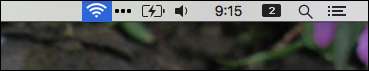 שורת התפריטים לא מחזיקה רק את תפריט היישום: הוא מכיל גם מספר אייקונים הקשורים ליישומים ולהגדרות שלך. אתה עשוי לחשוב שהדרך היחידה להשתמש בסמלים אלה היא באמצעות העכבר שלך, אך אתה טועה: אתה יכול להפעיל את סמלי סרגל התפריטים על ידי לחיצה על Fn + Control + F8 במקלדת. סמל שורת התפריטים הימני ביותר מודגש.