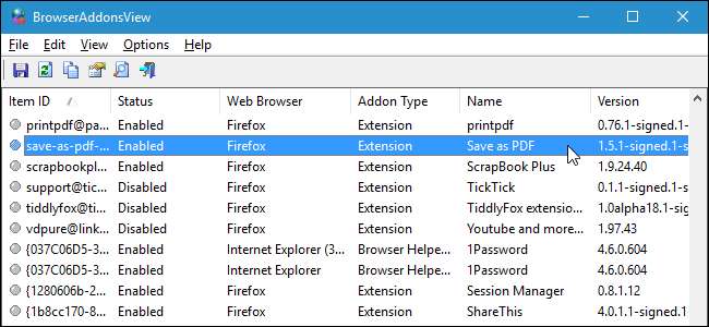 BrowserAddonsView מספק דרך נוחה לנהל את כל הרחבות Chrome, Firefox ו- IE שלך בתוכנית אחת. למרבה הצער, התוכנית אינה מאפשרת לך להפעיל, להשבית, להסיר או לבצע שינויים אחרים בתוספים. משימות אלה חייבות להתבצע בכל מנהל התוספים של כל דפדפן האינטרנט.