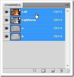 לחץ על הערוץ המשולב "מעבדה" בחלונית הערוצים. זה אמור להחזיר את התמונה לצבע מלא.