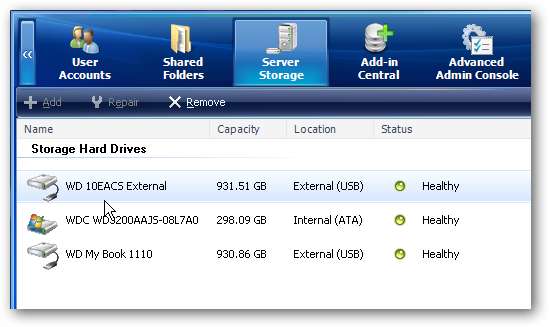 WHS יוסיף את הכונן חזרה לבריכה ובסיום תראה אותו רשום כבריא וטוב לשימוש.