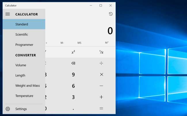 Windows 10 כולל גם אפליקציית מחשבון אוניברסלית להחלפת מחשבון שולחן העבודה הישן. הוא כולל פריסות סטנדרטיות, מדעיות ומתכנתים, כמו גם מגוון פונקציות המרת יחידות. עכשיו כשהוא יכול לרוץ בחלון קטן יותר על שולחן העבודה, זה למעשה שימושי כתחליף למחשבון Windows המסורתי.