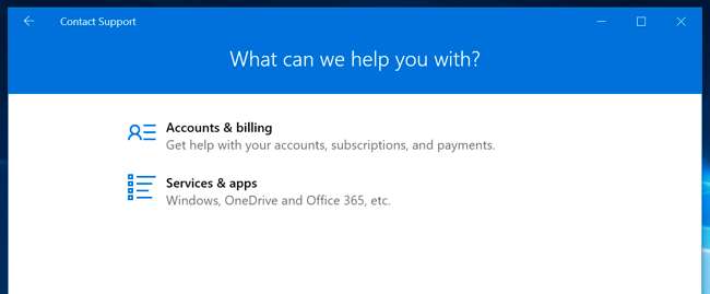 זה מיושם כאפליקציה מודרנית, אבל זה רק ממשק תמיכה. בנוסף למידע ולקישורים לדפי תמיכה שונים, אפליקציה זו כוללת אפשרות לקיים צ'אטים טקסטים חיים עם נציגי התמיכה של מיקרוסופט.
