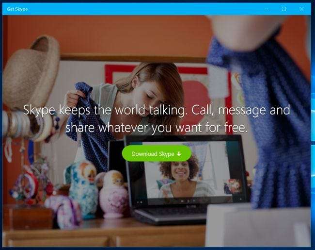 Windows 8.1 כלל אפליקציה מודרנית של סקייפ, אך MIcrosoft הרג אותה באופן חסר טקס כחודש לפני שחרורו של Windows 10. במקום זאת, מיקרוסופט כוללת יישום "קבל סקייפ" המספק דרך מהירה להוריד את יישום הסקייפ הישן, שנקרא פעם "סקייפ לשולחן העבודה של Windows" כדי להבדיל בינו לבין יישום המסך המלא.