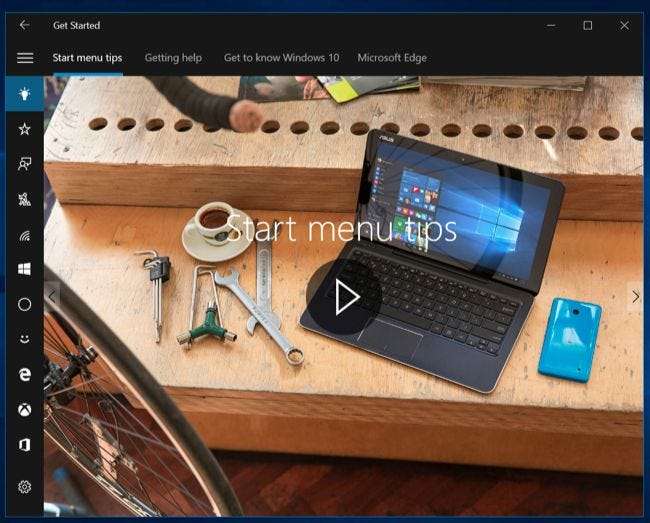 אפליקציית Get Started כוללת סרטונים, מדריכים ומגוון טיפים וטריקים שימושיים אחרים להבנת Windows 10 והיישומים הכלולים בה. מיקרוסופט למדה את הלקח שלהם מ- Windows 8, שלא כלל כל סוג של עזרה וטיפים כדי להאיץ משתמשים חדשים, והיישום Get Started נראה די מקיף ומועיל.