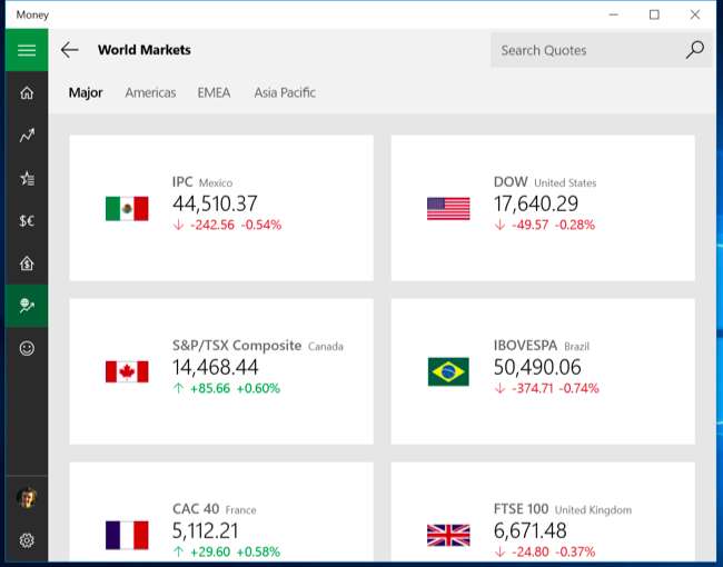 אפליקציית הכסף היא באמת MSN Money, ומספקת חדשות פיננסיות מ- MSN. בנוסף לחדשות פיננסיות, אתה יכול גם לעקוב אחר מניות, מטבעות ותנודות שוק ולהשתמש במחשבון משכנתא. אריחים חיים מאפשרים לכם להציג עדכונים פיננסיים בתפריט התחל, אם תרצו.