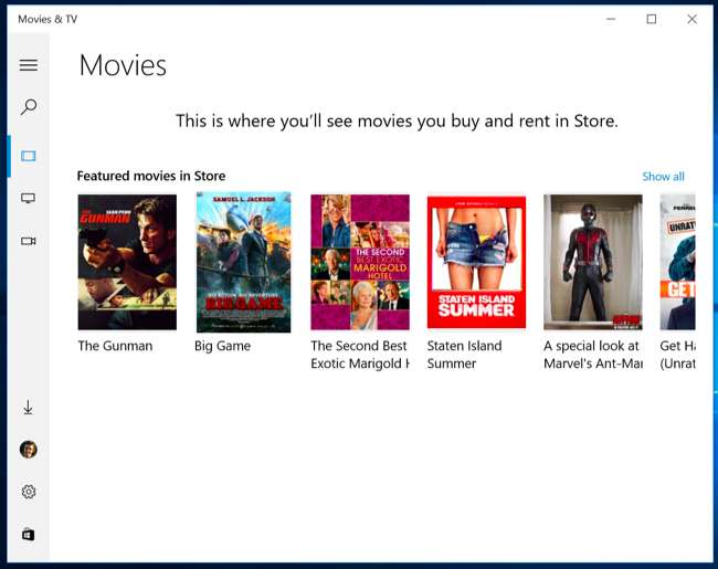 אתה יכול גם להוסיף קטעי וידאו משלך להוריד ולצפות בהם ביישום זה, שיכול לתפקד כנגן וידאו בסיסי. נגן המדיה של Windows עדיין כלול גם ב- Windows 10.