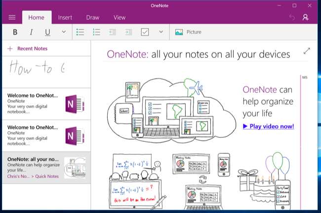 במקור רק חלק ממיקרוסופט אופיס, OneNote הוא יישום רישום ההערות של מיקרוסופט. אמנם אתה יכול גם להשתמש בגרסת יישום שולחני של OneNote, אך היישום הכלול נוח, קל לשימוש וחינמי לחלוטין. יש לו תמיכה מצוינת בחרטים. החיסרון האחד הוא שהוא יכול להיות מורכב יותר לשימוש אם אינך זקוק לכל התכונות המתקדמות שלו.