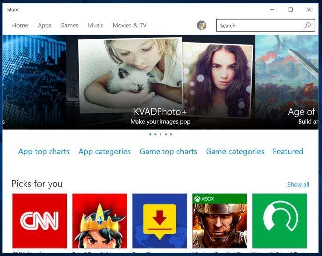 אפליקציית החנות היא המקום בו אתה מקבל יישומים אוניברסליים חדשים. זו הגרסה של Windows 10 ל- App Store באייפד או ב- Google Play במכשיר אנדרואיד. הוא בודק, מוריד ומתקין אוטומטית גרסאות מעודכנות של האפליקציות האוניברסליות הכלולות וכל היישומים שתתקין מהחנות.