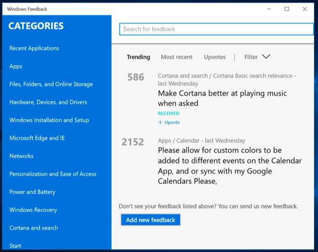 השתמש באפליקציה זו כדי לספק משוב לצוות Windows של מיקרוסופט. אתה יכול לדווח על באגים, לבקש תכונות ולהצביע בנושאים שאנשים אחרים דיווחו עליהם. בתיאוריה, צוות Windows של מיקרוסופט יכול לבחון את המשוב כדי לראות מה הם הבאגים הנפוצים ביותר ומהם התכונות הרצויות ביותר.