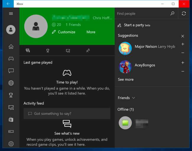 אפליקציית Xbox כוללת לא מעט פיצ'רים. הוא מספק לעדכון הפעילות הברור מידע על החברים שלך ב- Xbox Live והישגיהם, אך הוא משלב גם תכונות צ'אט של Xbox. למשחקים רבים מחנות Windows - אפילו אוסף ה- MIcrosoft Solitaire הכלול - יש הישגים מובנים ב- Xbox.