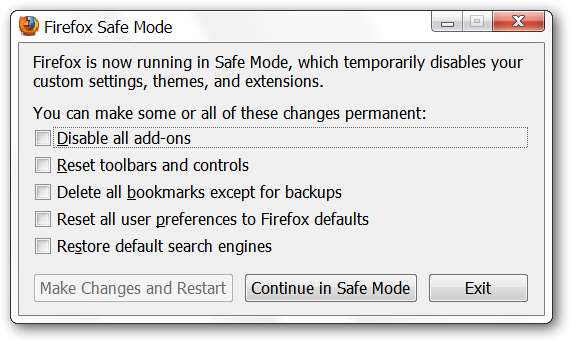 אם יש לך עדכון לתוסף, שינוי בהגדרות או שינוי בערך: תצורת תצורה מבלגן בהתקנת Firefox הרגילה שלך, אז תמיד יש לך "מצב בטוח" כדי לסייע בתיקון הבעיה.