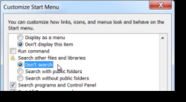 ישנן שתי דרכים להאיץ את תכונת החיפוש. אם אתה משתמש בעיקר בתיבת החיפוש למציאת יישומים, באפשרותך לשנות את ההגדרות עבור תפריט התחלה בתיבת החיפוש כך שהיא תחפש רק ביישומים בתפריט התחל, ולא בכל המסמכים הרבים שלך, תמונות, הודעות דוא"ל וכו '. נקה גם את המיקומים שאתה מוסיף לאינדקס ולכן פחות קבצים כלולים באינדקס. המאמר הבא מסביר את שתי השיטות.