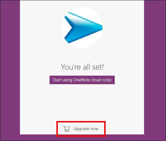 עם זאת, אם אתה מתחבר באמצעות חשבון מיקרוסופט ולא חשבון מקומי, אם פשוט תלחץ מעבר לזה, תגלה ש- OneNote עבור Windows 10 פועל באופן מלא מבלי להירשם למנויים נוספים. אז פשוט לחץ על כפתור "התחל להשתמש ב- OneNote" והתעלם מהחלק "לקריאה בלבד" שבו.