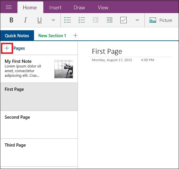 כדי להוסיף דף חדש לקטע ההורה, לחצנו על סימן הפלוס בסרגל השמאלי שם כתוב "+ דפים". לאחר מכן כל עמוד מתפקד כשטח פנוי נפרד משלו, בו ניתן להוסיף או לערוך כל כמות תוכן על ידיך או משתמשים אחרים שיש להם גישה למחברת.