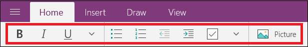 ראשית, יש את סרגל הבית. זה המקום שבו תוכלו לרוץ בכלי עריכה סטנדרטיים כמו יצירת רשימות תבליטים, שינוי סגנון הגופן (מודגש, נטוי וכו ') או יצירת כניסה חדשה.