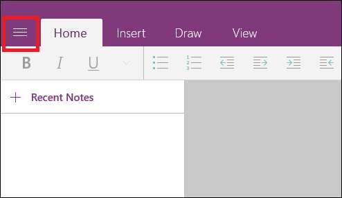 כדי להגיע לתפריט ההגדרות, ראשית יהיה עליך ללחוץ על כפתור התפריט בפינה השמאלית העליונה של חלון OneNote.