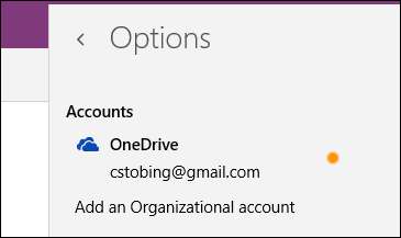 בכרטיסייה אפשרויות, תמצא הגדרות לשינוי חשבון OneDrive שכל ה- Notes שלך מסונכרן איתו. זה חשוב מכיוון שדוא"ל זה הוא המקום בו כל המחברות והדפים שלך יסונכרנו אוטומטית לענן בכל פעם שתבצע שינויים כלשהם.