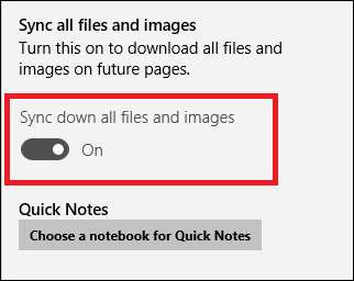 אחרון באפשרויות וסנכרון הוא המעבר ל"סנכרן את כל הקבצים והתמונות ". כאשר היא מופעלת, הגדרה זו פשוט תגרום לכל הערות אליהן אתה ניגש ממכונה אחרת להיטען מהר יותר בפעם הבאה שתאתחל אותה, על ידי הורדת קבצים ותמונות גדולים יותר למערכת שאתה עובד עליה במקום לטעון אותם מחדש מהשרת החיצוני. הקובץ נסגר או נפתח מחדש.