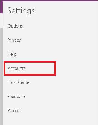 כדי לנהל אילו חשבונות מקושרים ל- OneNote שלך, פתח את הכרטיסייה "חשבונות" בתפריט ההגדרות.