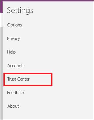מבין כל האפשרויות בתפריט ההגדרות של OneNote, "מרכז האמון" הוא ללא ספק מעורפל ביותר.