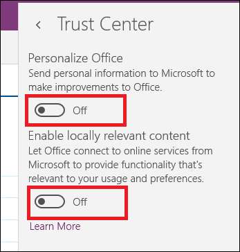 למרות שמיקרוסופט לא פרסמה פרטים ספציפיים למה הם רוצים את הנתונים האלה או מה הם עושים איתם מעבר ל"ביצוע שיפורים ב- Office ", אנו ממליצים כי אלא אם כן אתה זקוק להם במפורש משום מה, עדיף להשאיר את שני אלה אפשרויות מנותקות.