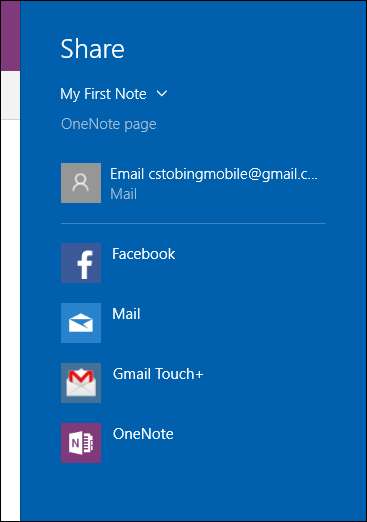 במקרה זה, אנו יכולים לשתף דרך לקוח Windows Mail, אל פייסבוק, דרך Gmail ישירות או עם בעל חשבון OneNote נפרד במחשב אחר.