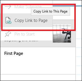 באופן דומה, כל דף או מחברת שתרצו לשתף יכולים להעתיק גם כקישור ישיר בלוח אם אתם כבר נתתם הרשאות לכל מי שלחץ עליו. לשם כך, מצא את התוכן שברצונך לשתף, ואז לחץ עליו לחיצה ימנית כדי להציג את תפריט המשנה הבא.